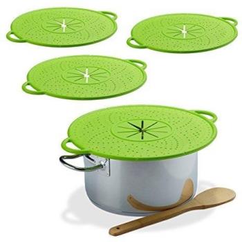 Set of 4 Silicone Boil Over Covers, Heatproof Pot Watchers, 30 cm ø, Green