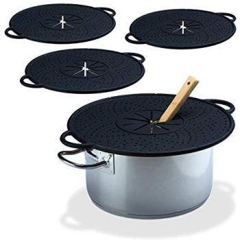 4 Pack Heat Resistant Silicone Pot Watchers and Spill Covers, 30 cm, Black