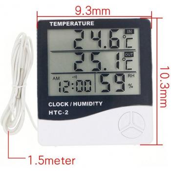 HTC Digital Thermometer Hygrometer Weather Station LCD HTC-2 Temperature Humidity Tester Clock Alarm Wall Sensor Probe LCD