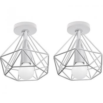 Industrial Cage Lampshade Pendant Lights - 2X White Metal Ceiling Lamps