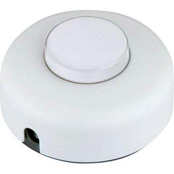 A white‑black footswitch rated 2 A at 250 V AC provides simple on/off control for audio or lighting gear, featuring a lightweight metal housing and a cushioned pedal that stays responsive during long sessions.