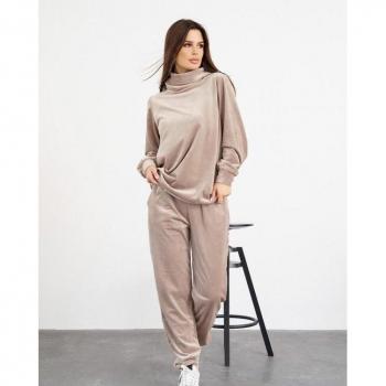 High Neck Velour Tracksuit ISSA Plus 3XL Beige