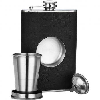 JEYL 8 oz Stainless Steel Flask with Built-in Shot Glass and Funnel
