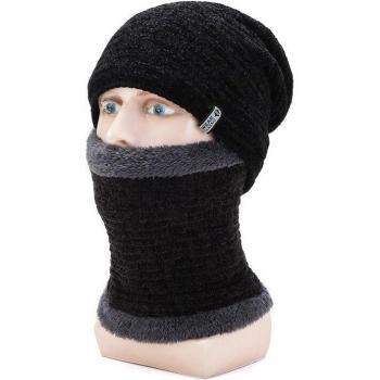 Kagenmo Lock Warm Male Winter Hat And Scarf Thick Fur Knit Cotton Double Yar Ear Neck Protection Twinset