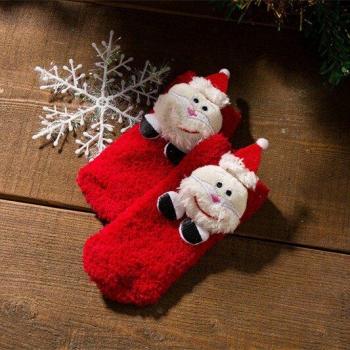 Kids Winter Christmas Coral Velvet Socks with Snowflake, Deer, Santa Claus, Bear Prints