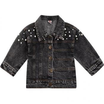Children's Black Denim Coat, Long Sleeve with Pearl Lapel and Buttons, 6M-4Y 2022