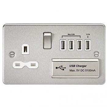 Quad USB Charger 13A Socket - Knightsbridge Flat Plate Design