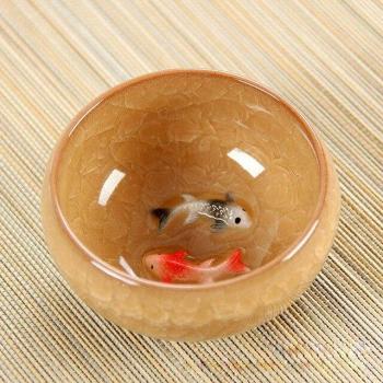 6pcs Ceramic 3D Golden Fish China tea cup set,Crackle Glaze Travel Tea Bowl Chinese Porcelain Teacup Sets Kung Fu Tea Set