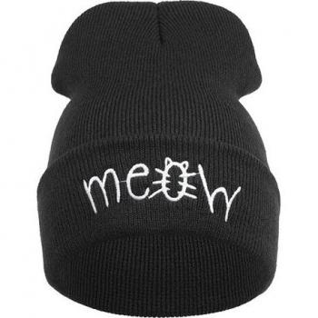 Embroidered Meow Casual Beanie for Girls
