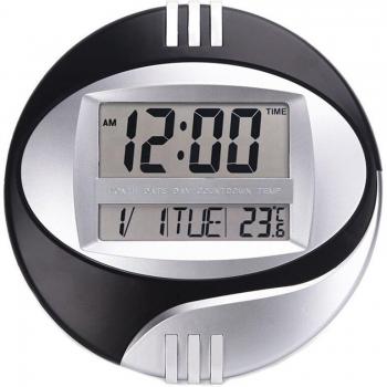 Black Electronic Wall Clock with Calendar and Temperature