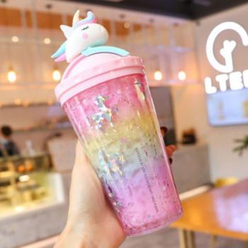 430ml Unicorn Cartoon Coffee Cup with Straw Thermal Double Wall Plastic Cup Mug Portable Leakproof Water Bottle