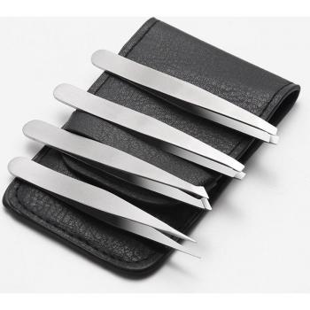 4-Piece Stainless Steel Tweezers Kit with Stylish Leather Case