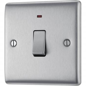 BG Electrical Single Light Switch with Power Indicator, Brushed Steel, 2-Way, 10AX