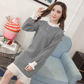 9533# Autumn Winter Knitted Maternity Long Sweaters A Line Charming Slim Dress Clothes for Pregnant Women Pregnancy Clothing