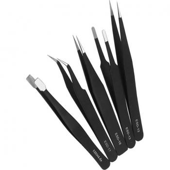 M6CF 10 Pcs ESD Tweezers Stainless Steel Long Curved Tips
