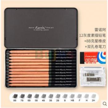 Marco 12PCS/Set Non-toxic Black Charcoal Sketching Pencils Soft Medium Hard Standard Pencils For School Art Supplie