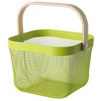 Wooden Handle Metal Grid Storage Basket for Kitchen