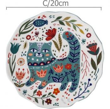 8inch Hand-painted Cat Dinner Plate Under-glazed Ceramic Dish Dessert Tray Flower Kitten Microwave Dinnerware YHJ021201