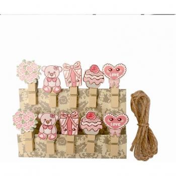10pcs/lot Mini Potted cactus Wooden Clip Decoration Hemp Rope Photo Decoration Memo Clip Office School Supplies