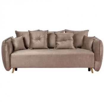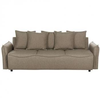 Elegant Light Brown Sofa Bed, 2 Seater, Fabric Upholstery, Magazine & Storage Armrests