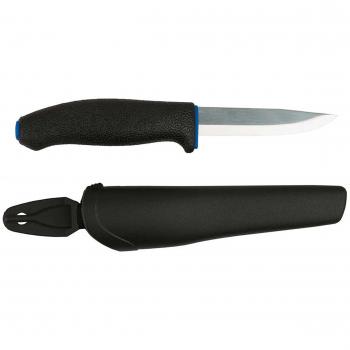 A sleek Mora Craftline Outdoor Knife in black or red offers a sharp carbon‑steel blade for precise cuts and a textured handle that grips firmly even when wet, making it ideal for hiking, fishing, or quick field repairs.