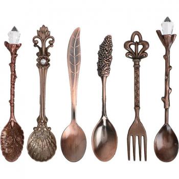 Antique Flower Carved Dessert Fork and Spoon Set - 6 Pcs