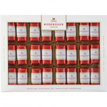 Savor the timeless charm of Niederegger’s miniature marzipan loaves, swathed in silky dark chocolate and arranged in a tasteful box. Each bite reveals a fragrant almond heart, finished with a glossy cocoa sheen.