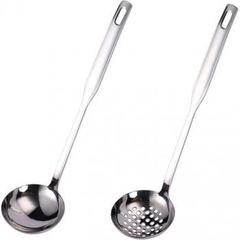 Stainless Steel Soup Ladle and Skimmer with Long Handle - 2 Pcs