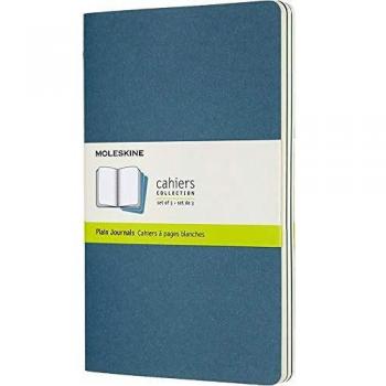 Moleskine Cahier Journal Set of 3 Notebooks, Plain Pages, Brisk Blue, Large 13 x 21 cm, 80 Pages