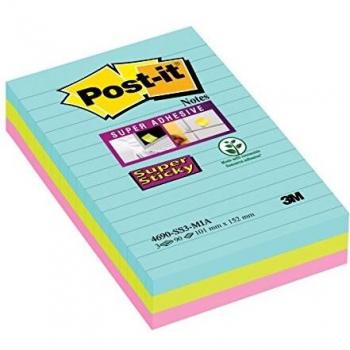 Post-it Notes Super Sticky XL 101 x 101mm Lined Miami (3 Pack)