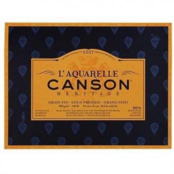 Canson Heritage Watercolour Pad, Glued on Four Sides, 20 Sheets, Fine Grain Fine Grain 31 x 41 cm