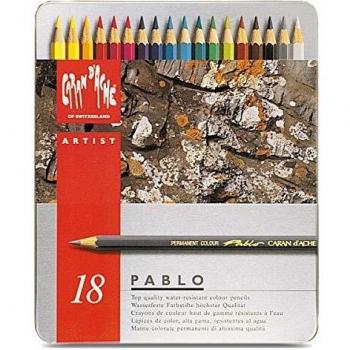 Caran D'Ache Pablo Artists Quality Colouring Pencils Tin Set of 18 Assorted Water Resistant Colours