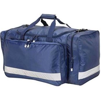 A sleek 30‑liter backpack in black with a subtle royal blue stripe, featuring a roomy main compartment, padded laptop sleeve, adjustable shoulder straps and a front zip pocket for quick access.