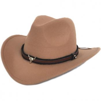 Ox Head Unisex Woolen Cowboy Hat with Wide Brim & Strap