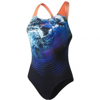 Speedo Women's Heatshine Placement Digital Powerback Swimsuit, Black/Post It Pink/Fluo Orange/White, 40 (UK 18)