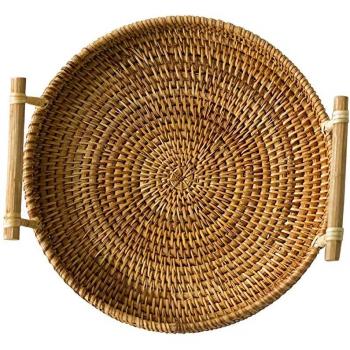 Round Rattan Tea Tray with Handles (8.7 Inches)