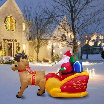 Oversized 86.61″ Christmas LED Santa Inflatable featuring Reindeers & Sleigh – EU Socket
