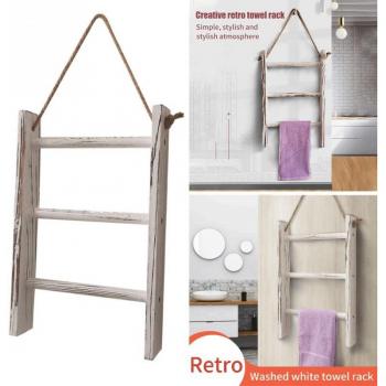 3 Tiers Blankets Wooden Towel Rack Wall Hanging Bathroom Space Saving Mini With Rope Retro Living Room Storage Ladder Home Decor