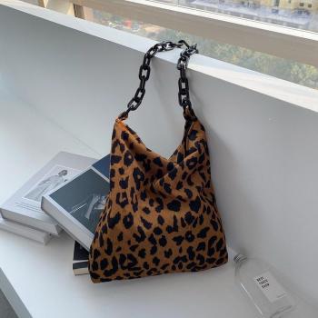 Thick Chain Corduroy Leopard Print Shoulder Bag - Autumn Winter Women's Crossbody