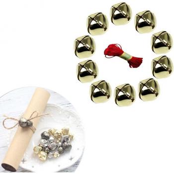 50pcs Christmas Jingle Bells with 20m Red String 20mm Gold