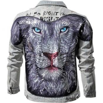 Hipster Blue Jeans Jacket with Lion Patchwork