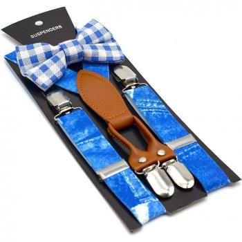 SHOWERSMILE Children's Denim Blue Braces and Bow Tie Set