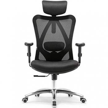 SIHOO Black Office Chair with Adjustable Headrest and Ergonomic Design