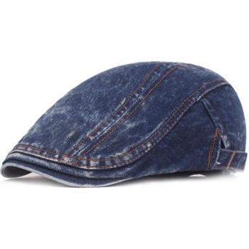SLECKTON 100% Cotton Denim Berets Cap for Men Casual Peaked Hat Retro Flat Cap Striped Newsboy Caps Cowboy Hat for Unisex Gorras