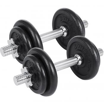 HOMCOM Rubber Dumbbell Weights Body Power Hex Home Gym Exercise 15KG, Black