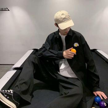 Ins Casual Men's Long-Sleeved Shirt with Small Daisy