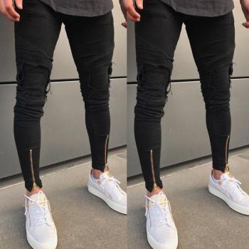 S-4XL Boys Mens Ripped Jeans Stretchy Skinny Slim Fit Denim Pants Destroyed Frayed Moustache Effect Trousers Streetwear