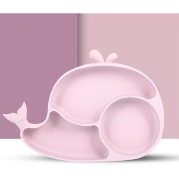 Baby Cartoon Whale Food Grade Silicone Feeding Plate Children Tray Non-slip Suction Cup Grid Bowl Children Tableware Fork Spoon