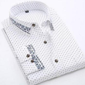 Men's White Dotted Plus Size Shirt - 100% Polyester, Casual Fit for Spring/Summer FSVY128
