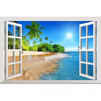 3D High Definition Summer Beach Scene Window Frame Wall Stickers